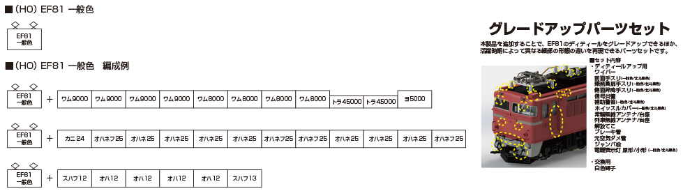 ● EF81 is active in a wide range of activities from the JNR era to Reiwa, from the JNR to the general freight train. The product adopts the bogie-driving unit method of a coreless motor that realizes smooth and high driving performance, and is also equipped with a tail light lighting gimmick, making it suitable for replacement operation in small spaces.